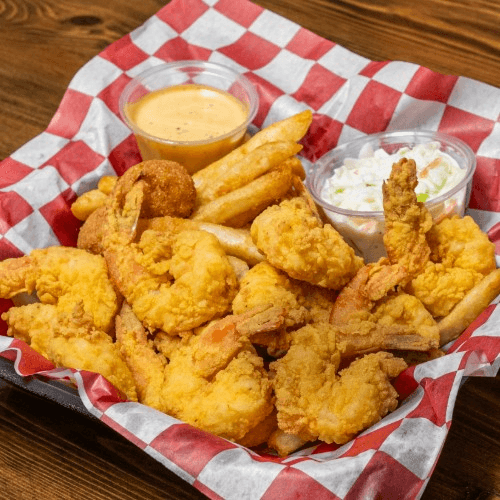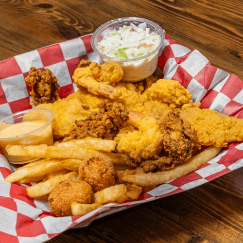Comes with fries, hush puppy, and coleslaw. Serve for 3-4
