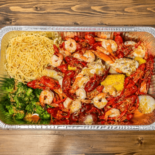Comes with shrimp, corn, potato, broccoli, & noodle