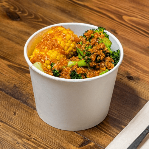 Comes with corn, potato, broccoli, & noodle